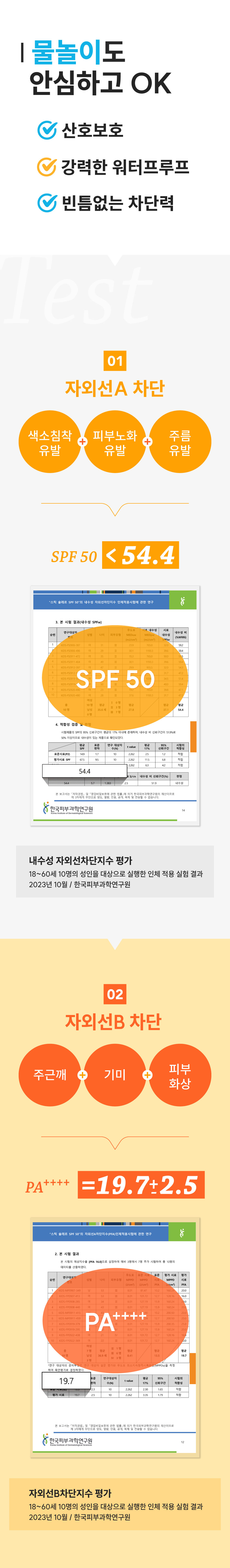 피부를 햇볕에 노출하기 30분 전에 바릅니다. 이후 2시간 마다, 또는 물에 들어갔다 나올 때마다 덧바릅니다.