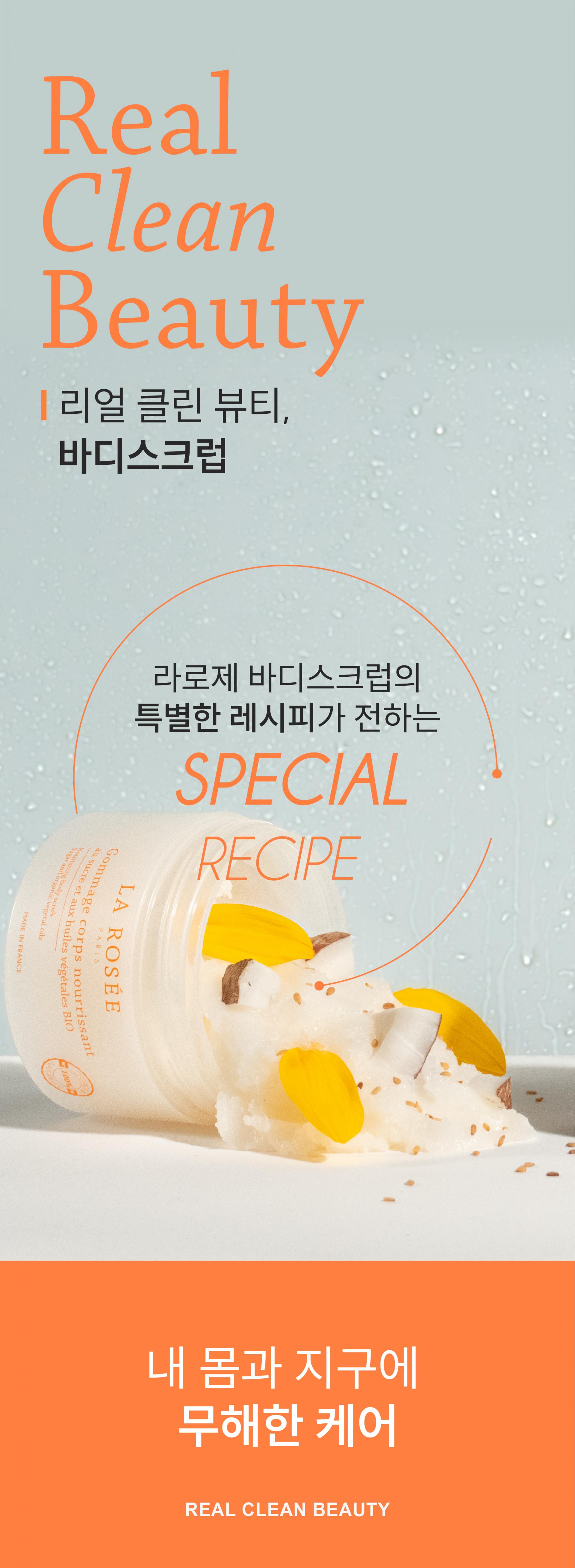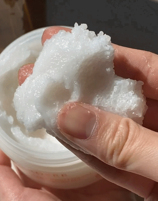 주 2회, 물기가 있는 피부에 스크럽을 적당량 덜어 원을 그리며 부드럽게 마사지하듯 문질러 준 다음, 물로 씻어내 주세요.