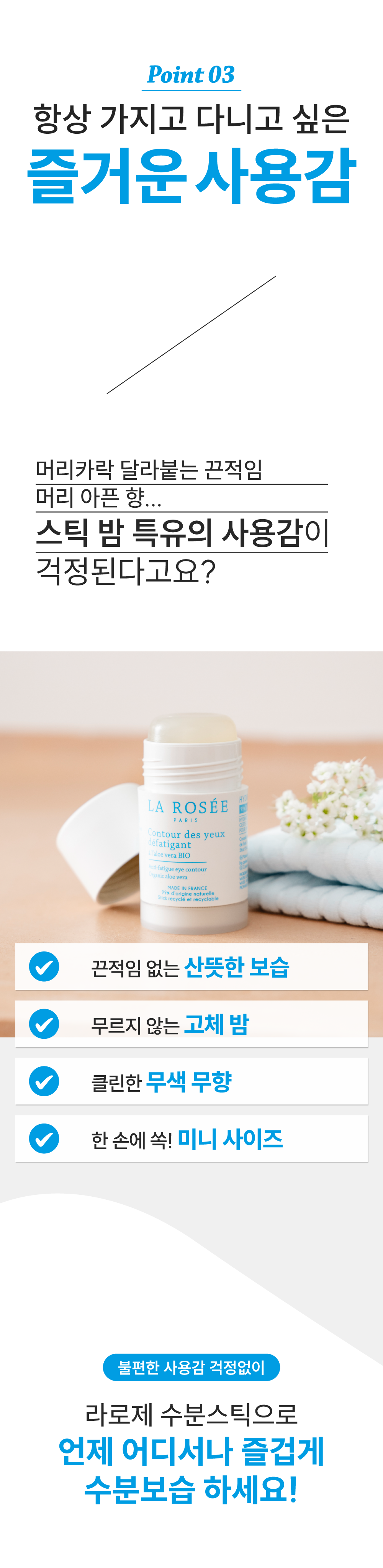 수분스틱 - 프로필렌글라이콜, 글리세린, 정제수, 다마스크장미꽃수, 소듐스테아레이트, 프로판다이올, 귀리커넬추출물, 에버라스팅꽃수, 소듐하이드록사이드, 서양송악잎/줄기추출물, 소듐벤조에이트, 시트릭애씨드, 포타슘솔베이트