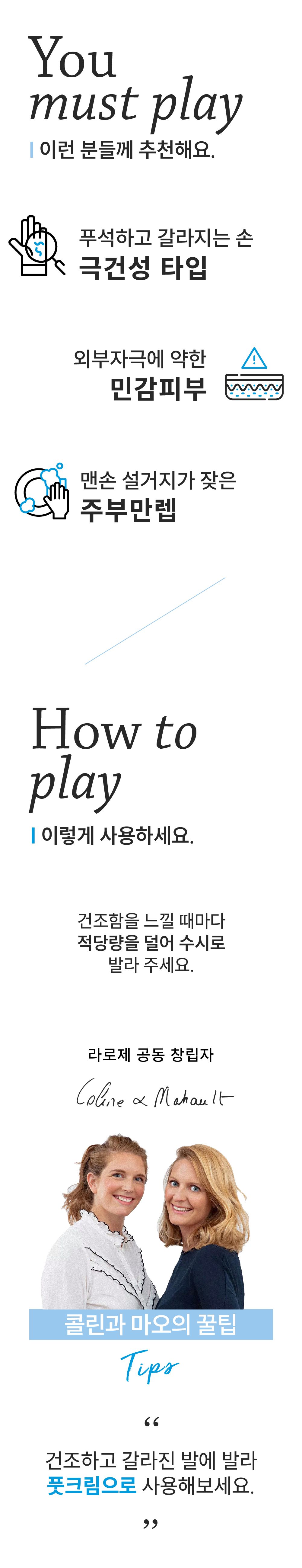 ■ 핸드 크림 : 건조함을 느낄 때마다 적당량을 덜어 수시로 발라 주세요. / ■ 너리싱 립밤 : 입술에 건조함이 느껴질 때마다 수시로 발라 줍니다. 다 쓴 립밤의 안쪽 스틱을 살짝 당겨 분리 후, 새 리필을 끼워 줍니다.