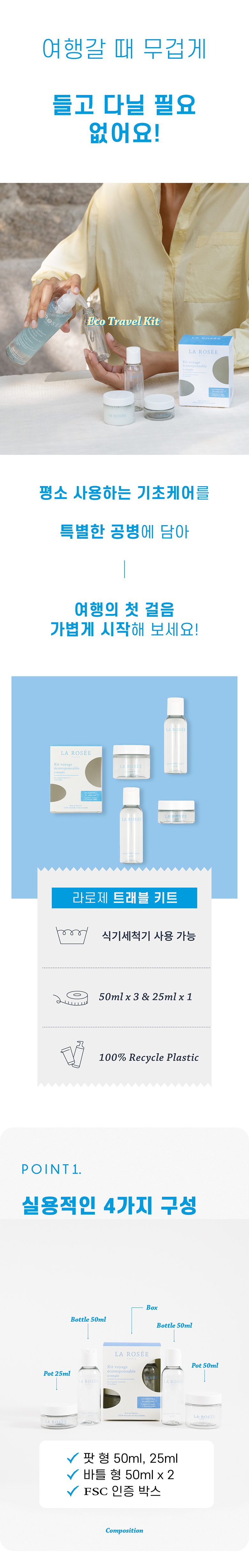 여행갈 때 평소 사용하는 스킨케어, 바디케어 제품을 덜어 가볍게 떠나세요.