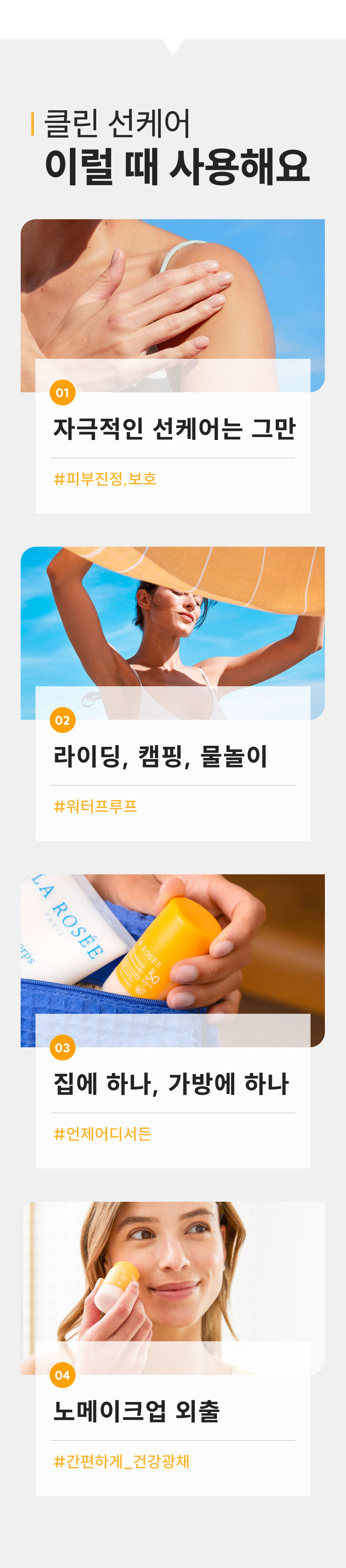 피부를 햇볕에 노출하기 30분 전에 바릅니다. 이후 2시간 마다, 또는 물에 들어갔다 나올 때마다 덧바릅니다.