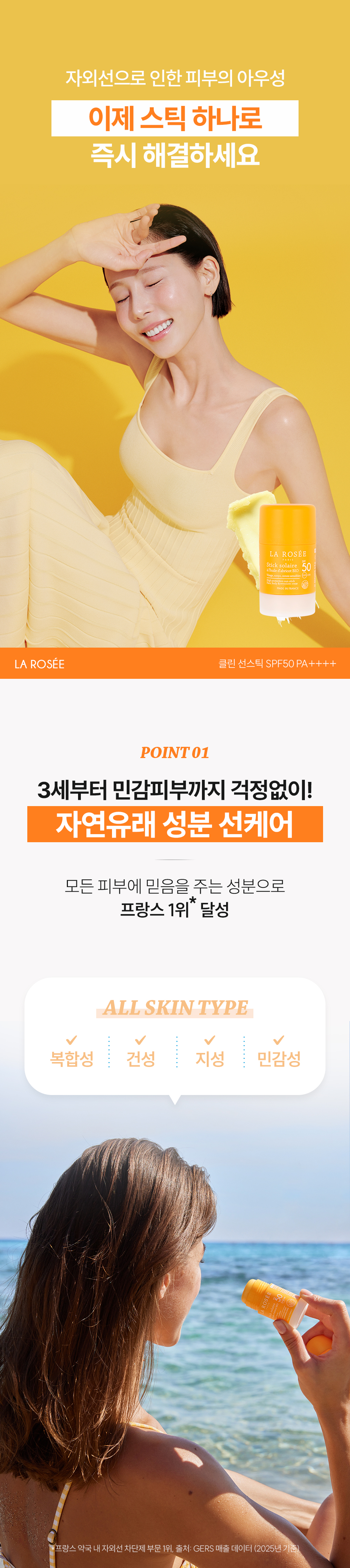 해양생태계 보호 포뮬러 라로제 클린 선스틱+수분스틱 조합.
